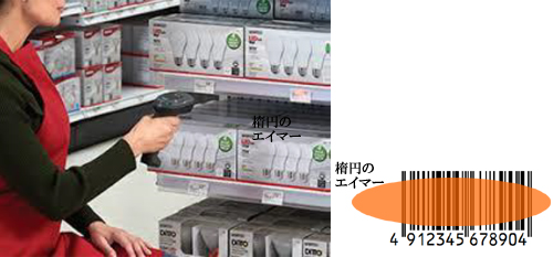 - 楕円のエイマー(読取光)で、バーコードスキャナのように使用が可能